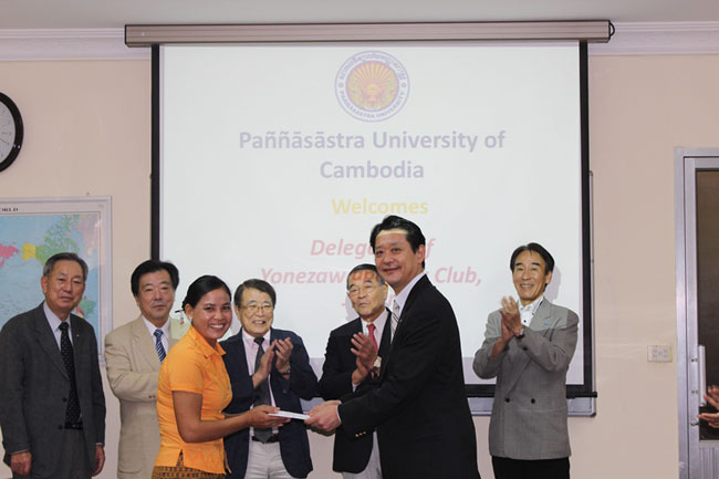 Four PUC students received scholarship grants of $300USD from the Japanese Yonezawa Rotary Club (JYR). They are: Sourng Sythorn, majoring in TESOL; Sien Kong Rathana, majoring in Computer Science; Nov Synoeun, Majoring in Media; and Venerable Mang Chet, Majoring in Political Science.