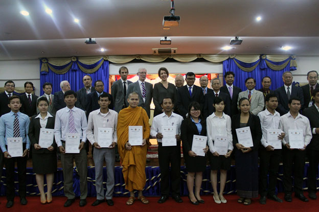 At the ceremony, PUC had the honor to have in attendance H.E. Dr. Hang Chuon Naron, Minister of Education, Youth and Sports; H.E. Ms. Anna Maj Hultgård, Swedish Ambassador to Kingdom of Cambodia; and Prof. Goran Melander, RWI Founder. Prof. Melander came to launch the program and to congratulate the 15 newly recruited PUC-RWI students who received scholarships funded by the Swedish Development Agency to study in this master program.
