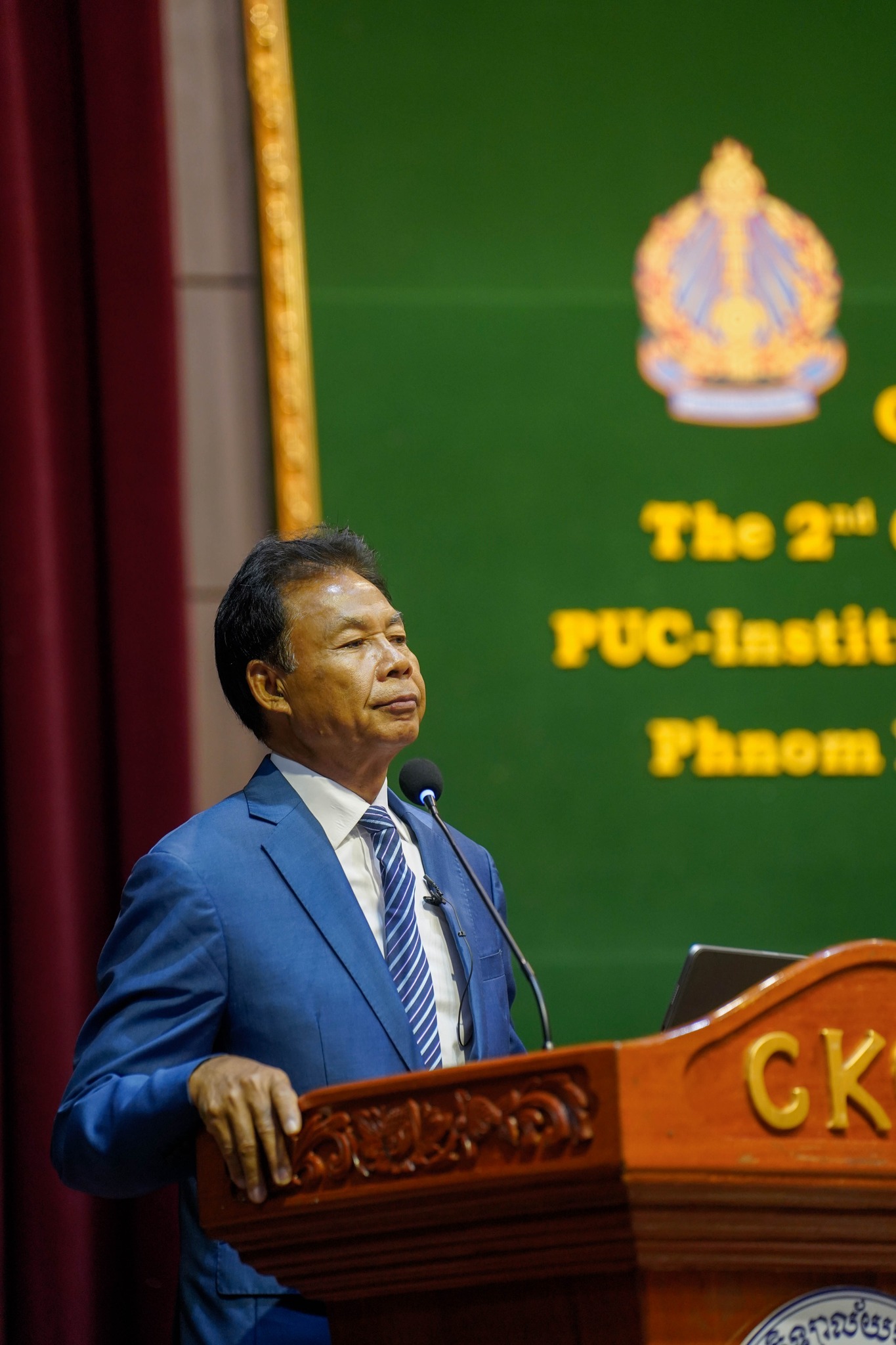 The distinguished ceremony was graced by the presence of esteemed guests, including Samdech Preah Dhammalikheta, Dr. Sao Chanthol, Royal Councilor and Supreme Councilor of the Mahanikaya of the Kingdom of Cambodia; Dr. Kol Pheng, Founder and President of Paññāsāstra University of Cambodia and Paññāsāstra International School; H.E. Veng Sereyvuth, Chairman of the Board of trustees of Paññāsāstra University of Cambodia; and H.E. Dr. Korm Ribaun, Senior Vice President of PUC-IFL & University Relations.